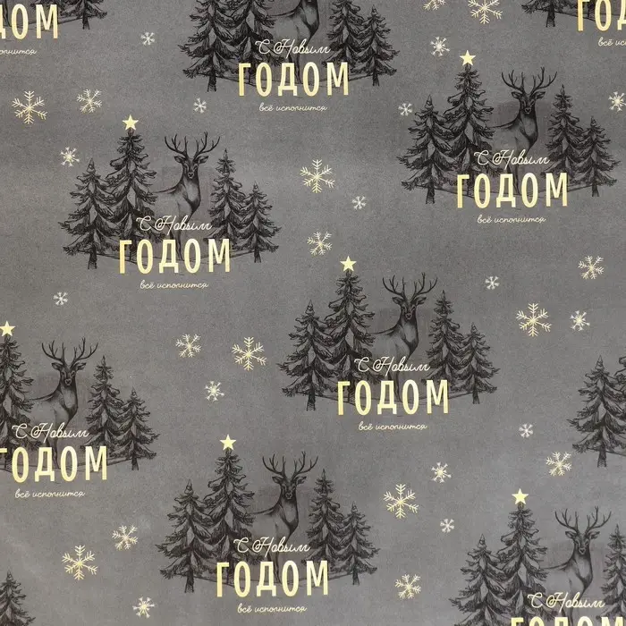 Бумага упаковочная глянцевая «Олени в лесу», 70 х 100 см