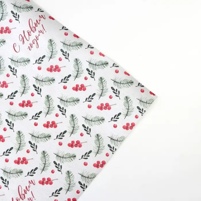 Бумага упаковочная крафтовая «Ветви с ягодами», 50 х 70 см
