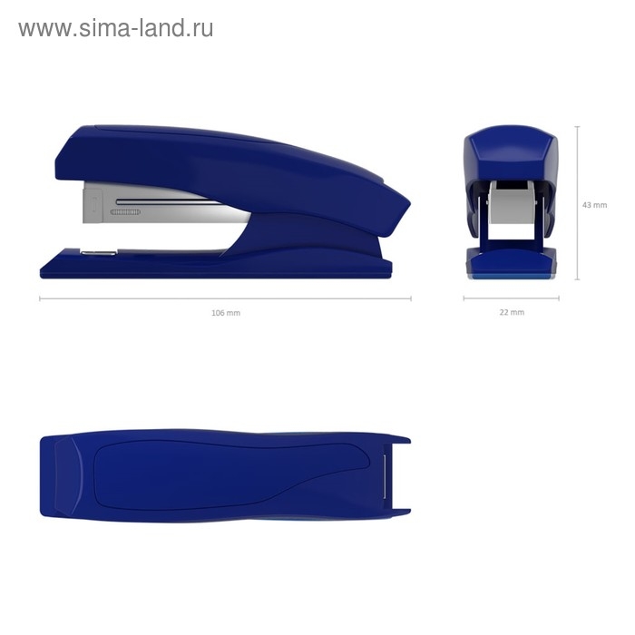 Степлер № 10 до 12 листов, BRAUBERG Einkommen, пластиковый корпус, встроенный антиСтеплер, синий
