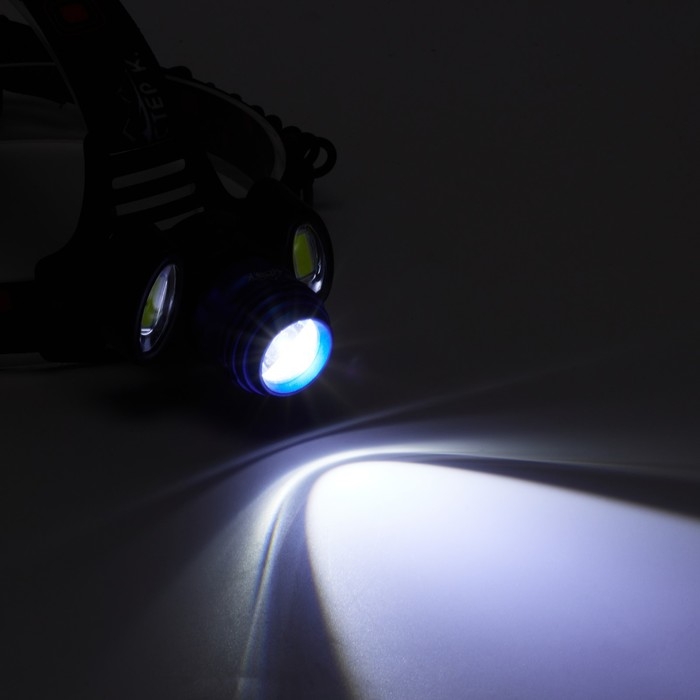 Фонарь налобный аккумуляторный, 10 Вт, 1000 мАч, 200 лм, LED, IPX3