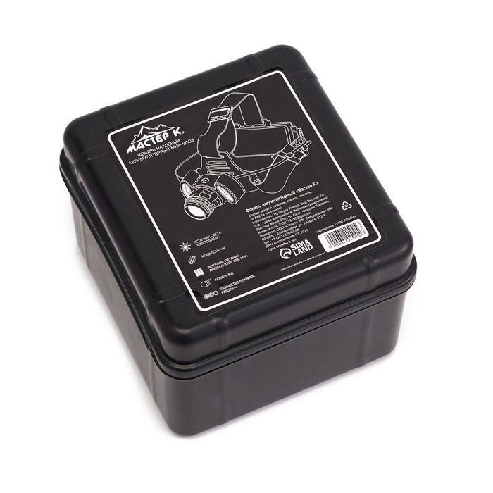 Фонарь налобный аккумуляторный "Мастер К", 1200 мАч, 4 режима, 7.5 х 8 см