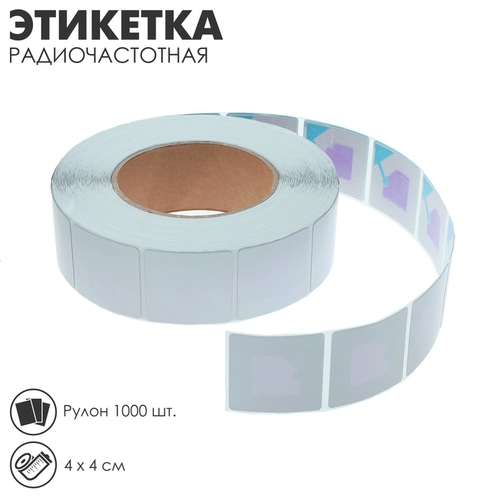 Этикетка радиочастотная 4×4, белая, рулон 1000 шт.