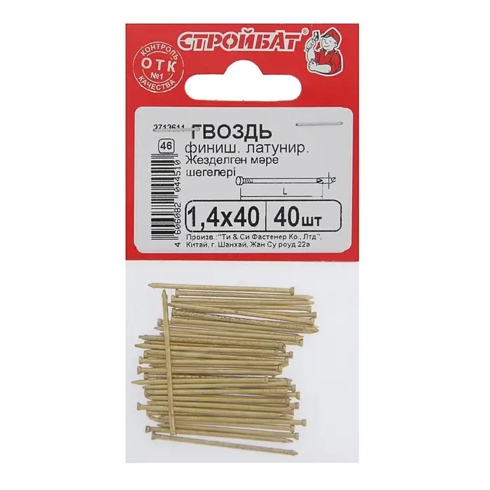 Гвозди СТРОЙБАТ, финишные, ГОСТ 7811-7035, латунированные, 1.4×40 мм, 40 шт.