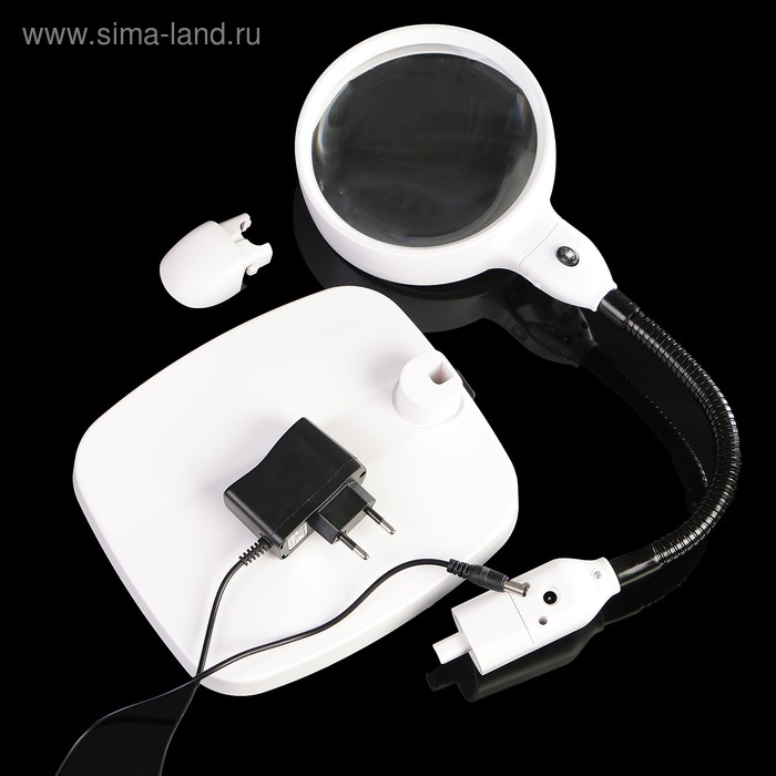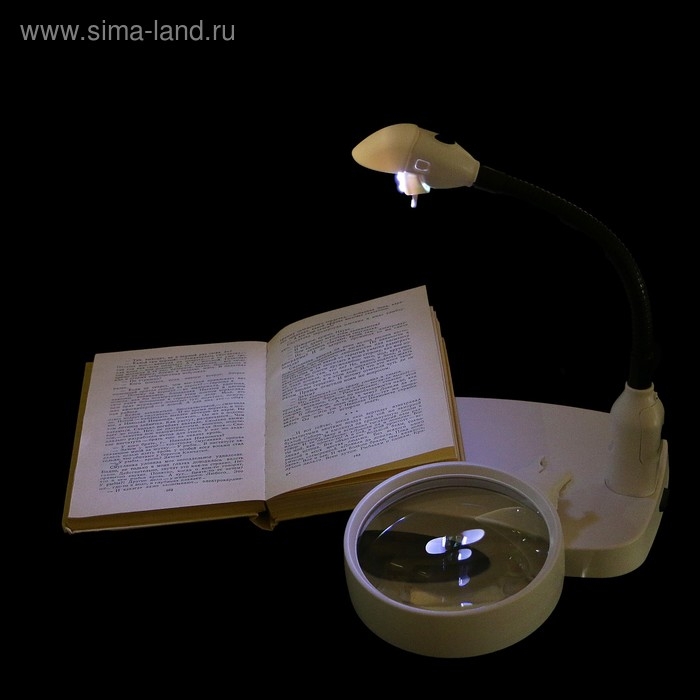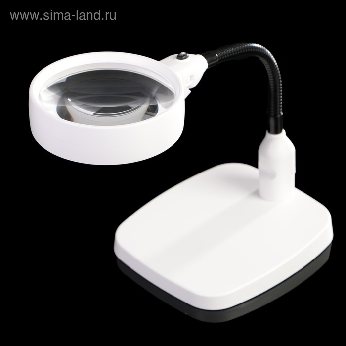 Лупа настольная 10х d=12 см, на гибкой ножке с подсветкой, белая