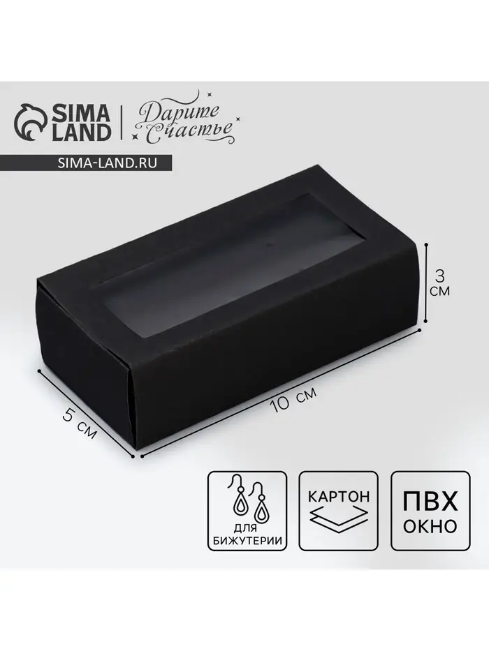 Коробка под бижутерию, упаковка, «Черная», 10 х 5 х 3 см