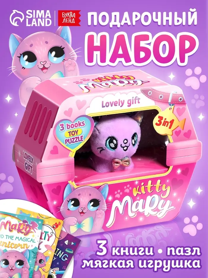 Gift toy set kitty 3in1 ( 3books, puzzle, toy)