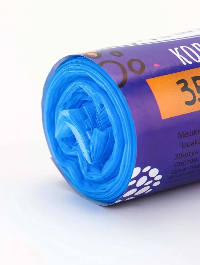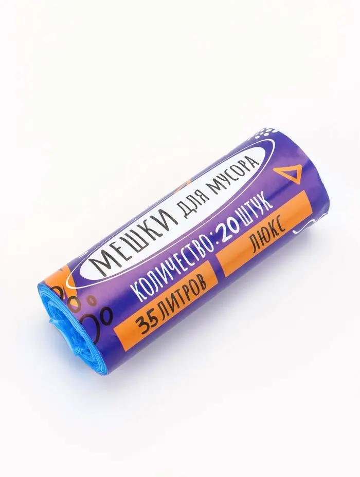Мешки для мусора 35 л, ПНД толщина 10 мкм, 20 шт в рулоне, цвет синий