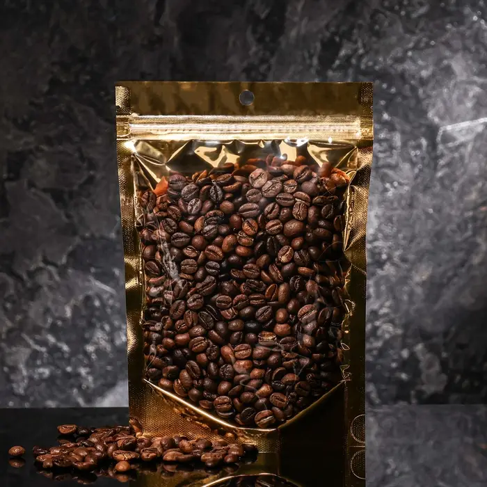 Пакет дой-пак, матовый, золотой, с прозрачной стенкой,14 х 20 х 8 см