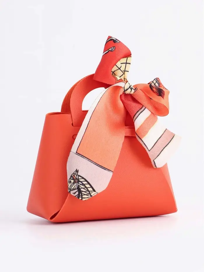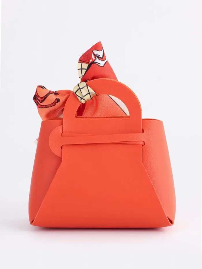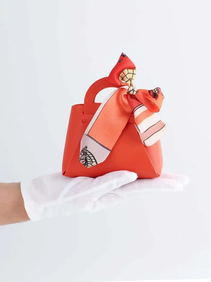 Кожанная подарочная сумочка 13 х12 х 5,5 см оранжевая