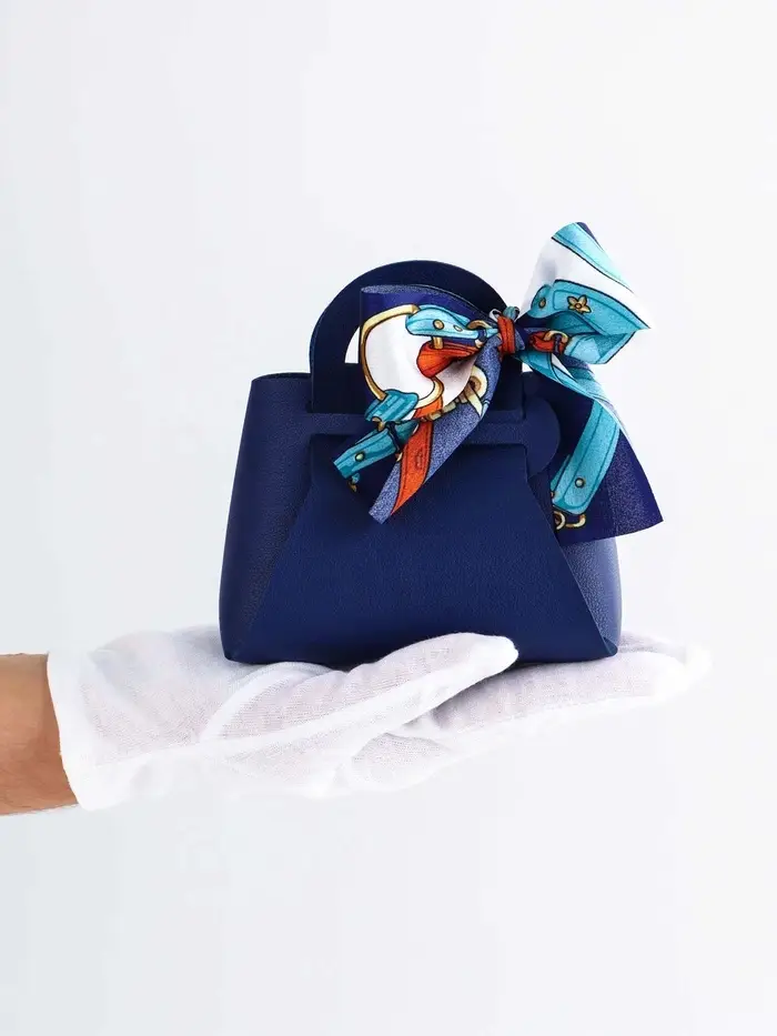 Кожанная подарочная сумочка 13 х12 х 5,5 см глубокий синий
