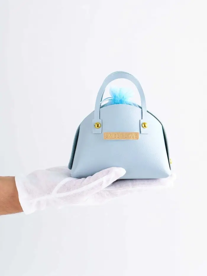 Кожанная подарочная сумочка 14 х 6,5 х 12,8 см небесно-голубая