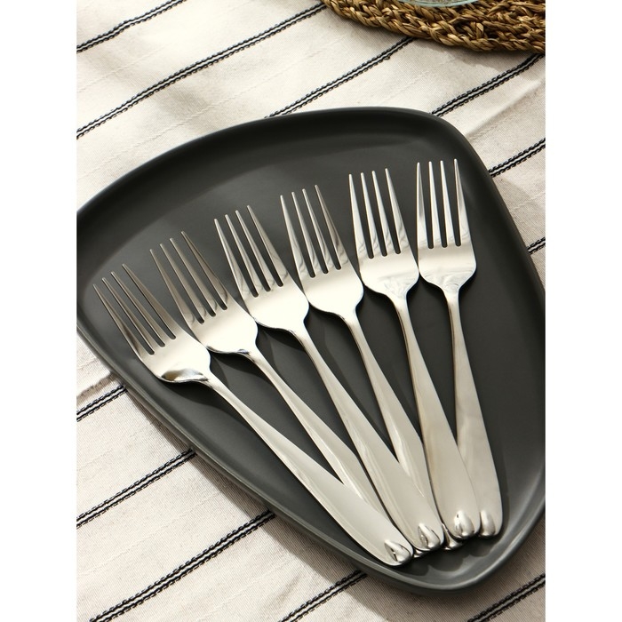 Набор вилок столовых из нержавеющей стали Доляна «Капля», длина 21 см, 6 шт, цвет серебряный