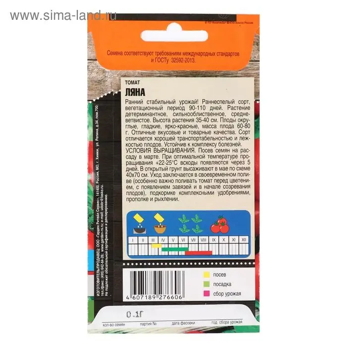 Семена Томат "Ляна" кустовой, раннеспелый, 0,1 г