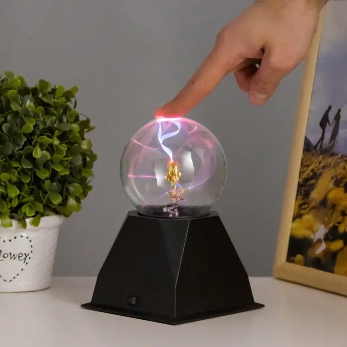 Плазменный шар (шар Теслы) — декоративный светильник, за которым интересно наблюдать. Высокочастотные токи сверкают и следуют за рукой при прикосновении. Смело касайтесь стеклянного шара и следите за маленькими молниями.