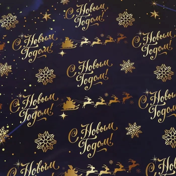 Бумага упаковочная глянцевая «Олени на золотом», 70×100 см