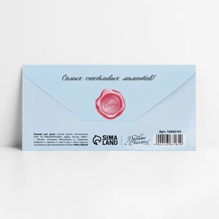 Конверт для денег «Для тебя», 16.5 х 8 см