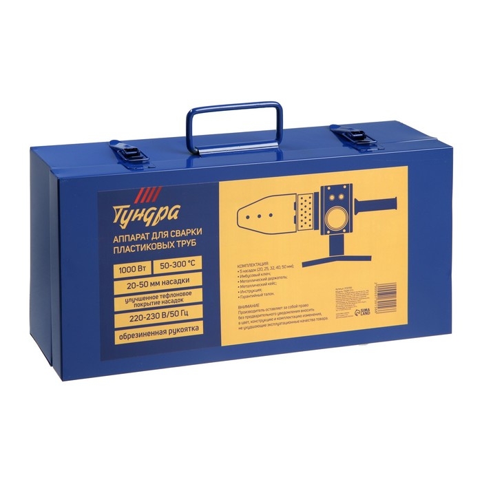 Аппарат для сварки пластиковых труб ТУНДРА, 1000 Вт, комплект насадок 20-50 мм, 50-300°