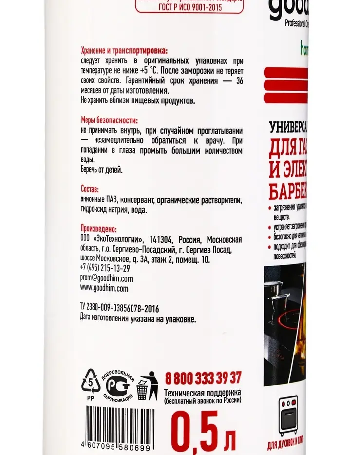 Ун.очиститель для газовых и электроплит, мангалов и барбекю"УН.Очиститель"(маркетплейсы),0,5л* 10934