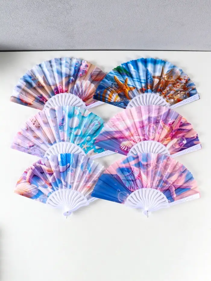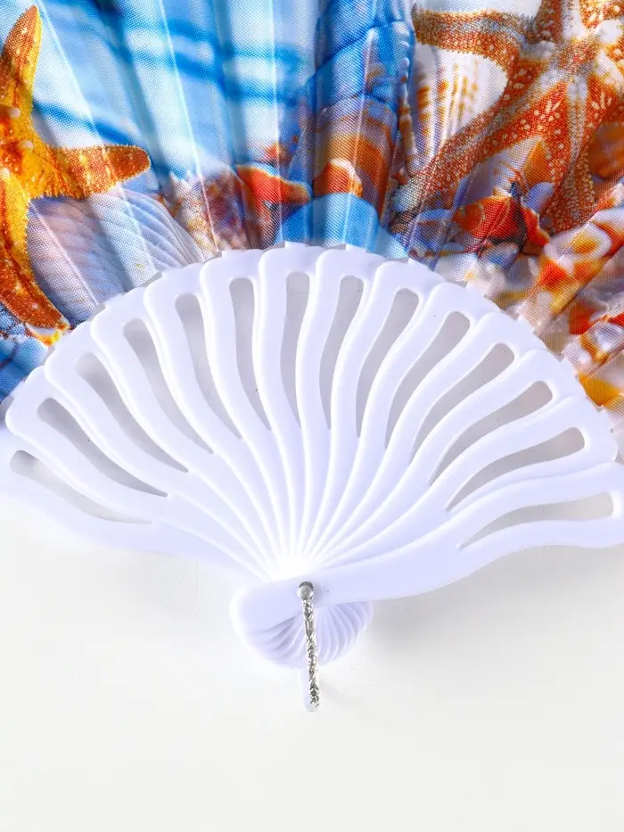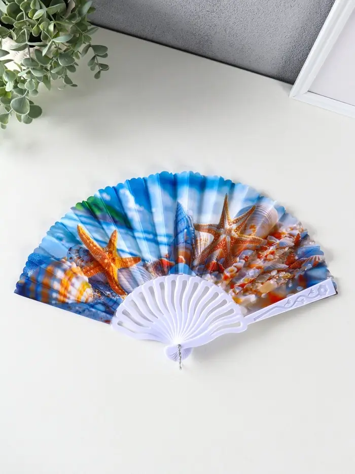 Веер пластик, текстиль "Морские ракушки" МИКС 23 см