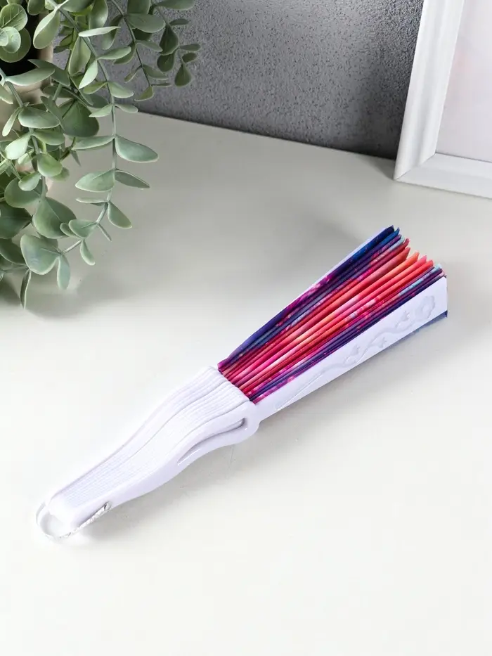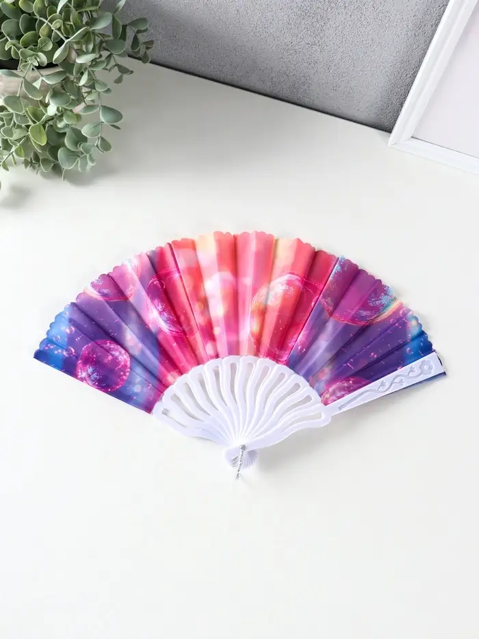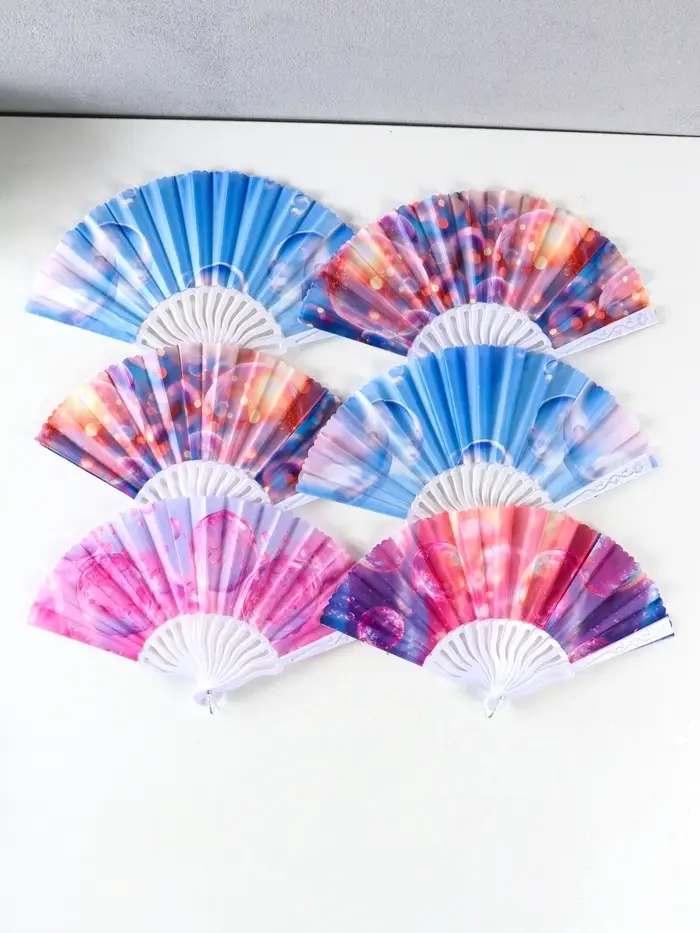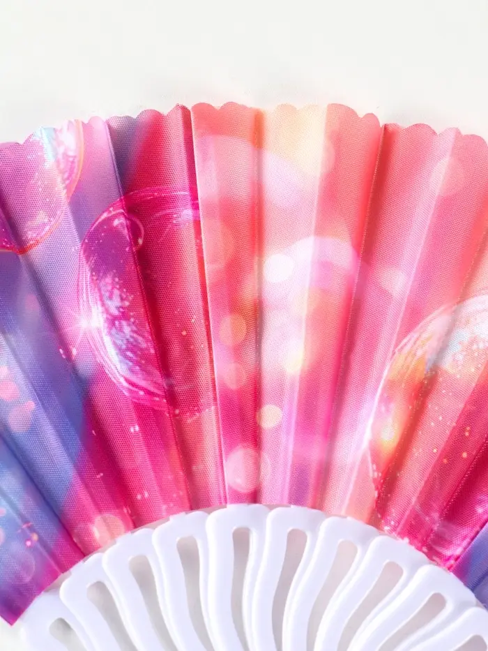 Веер пластик, текстиль "Пузырьки" МИКС 23 см