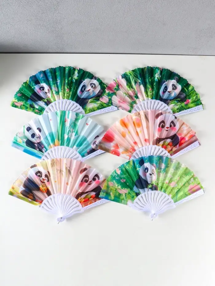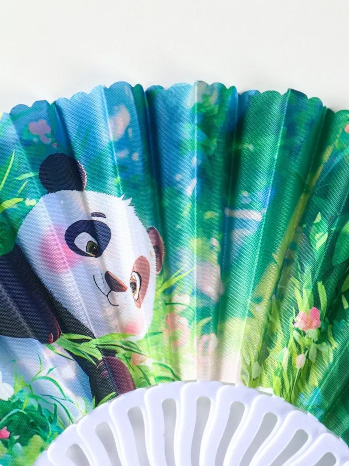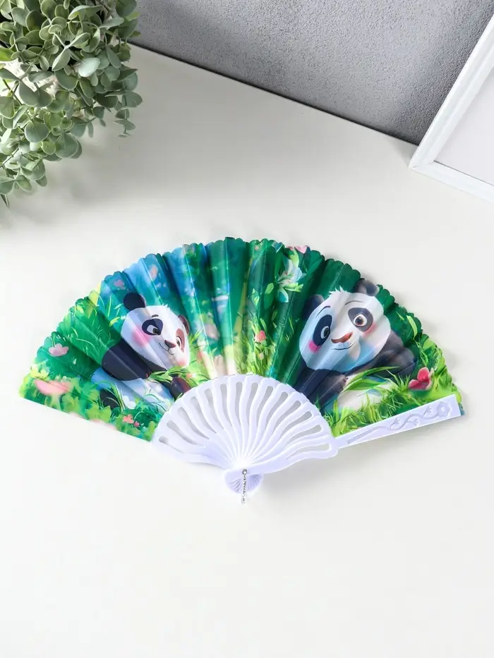 Веер пластик, текстиль "Панда в цветочном саду" МИКС 23 см
