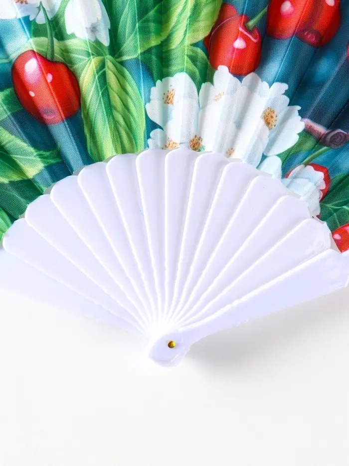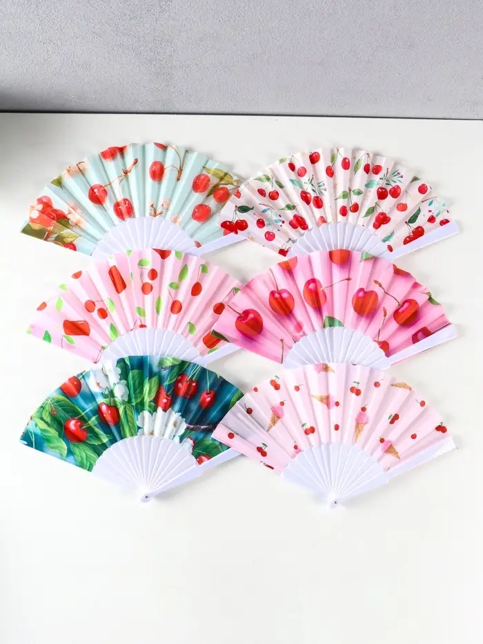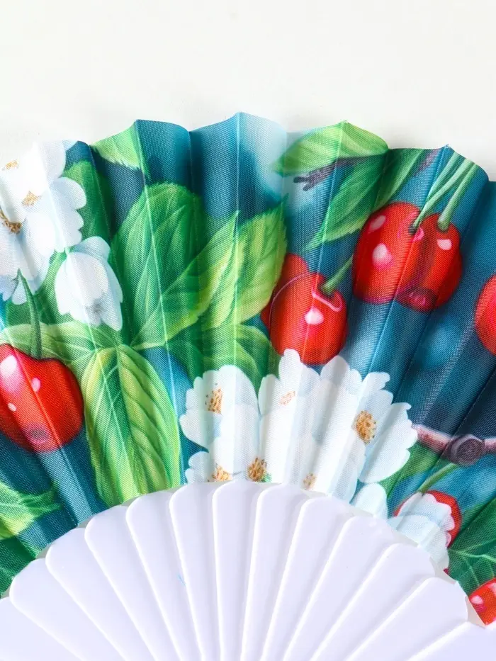 Веер пластик, текстиль "Вишня и цветки" МИКС 23 см