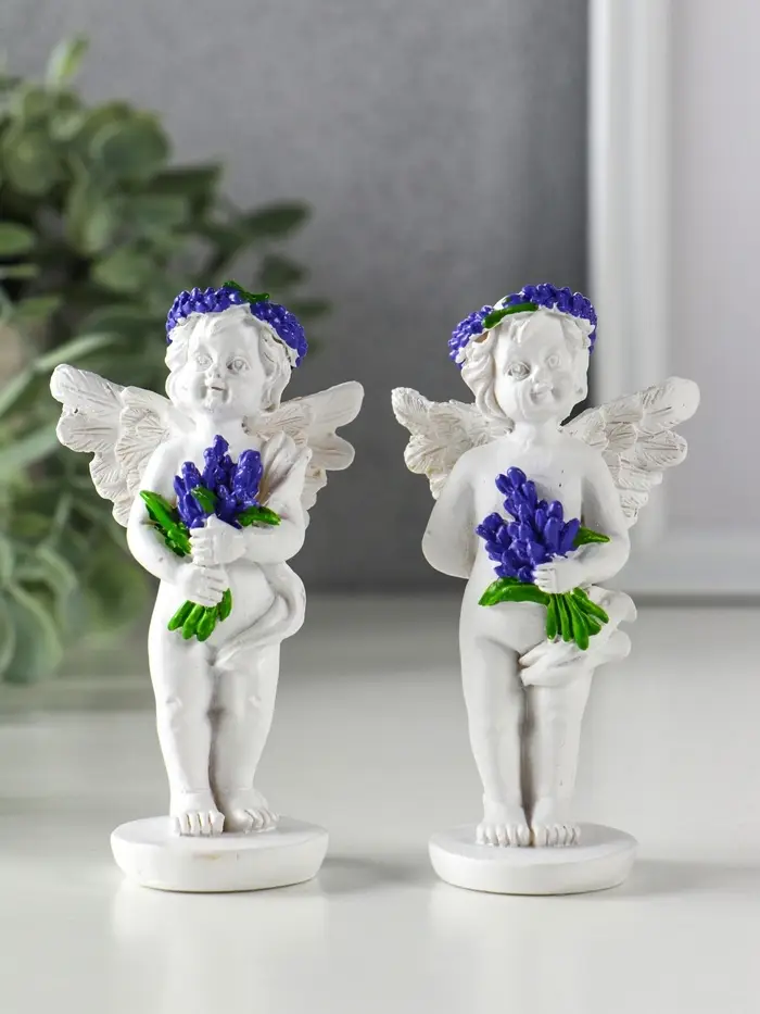 Сувенир полистоун "Ангел с букетом лаванды" бело-фиолетовый МИКС 5,7х3,5х10 см