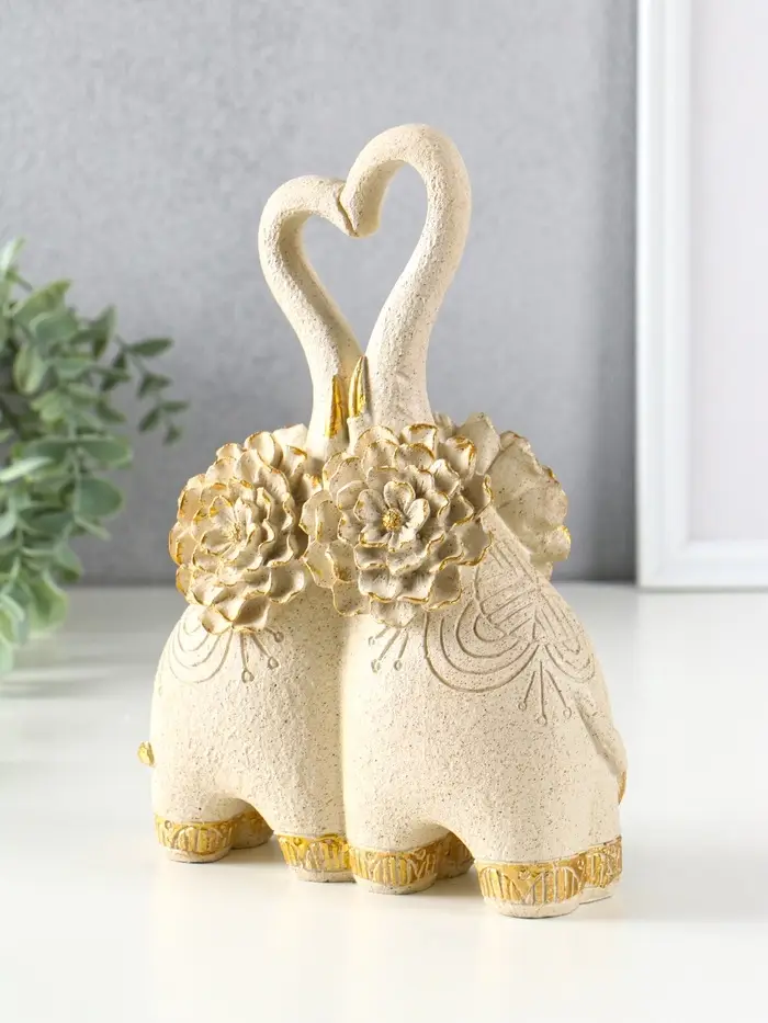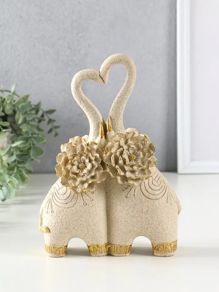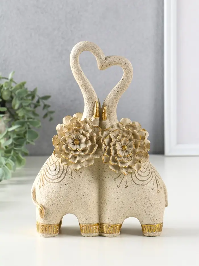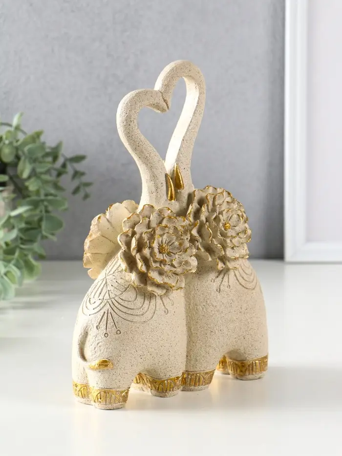 Сувенир полистоун " Парочка слонов с цветочными ушами" песочный 8х17х25,5 см