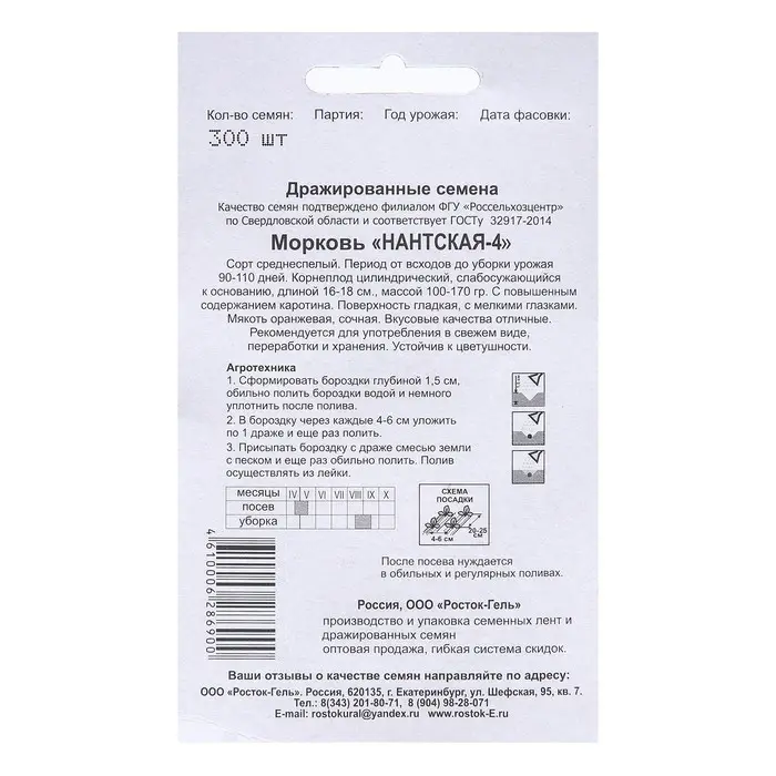 Семена Морковь "Нантская 4", 300 шт.