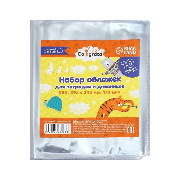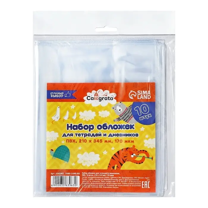 Набор обложек ПВХ 10 штук, 210 х 345 мм, 170 мкм, для тетрадей и дневников (в мягкой обложке)