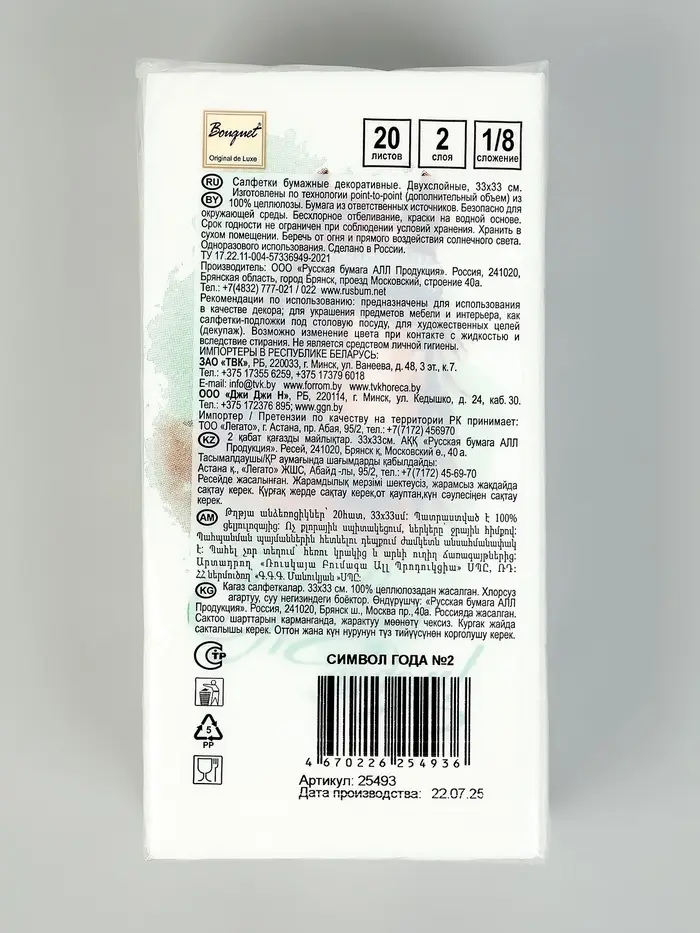 Символ года (6+6) 1/8 Салфетка 33х33, 2 слоя, 20шт. /12 , шт № 2
