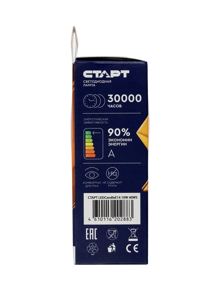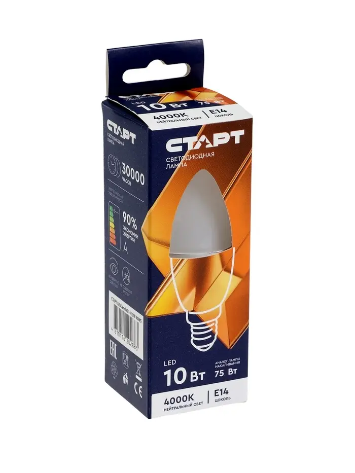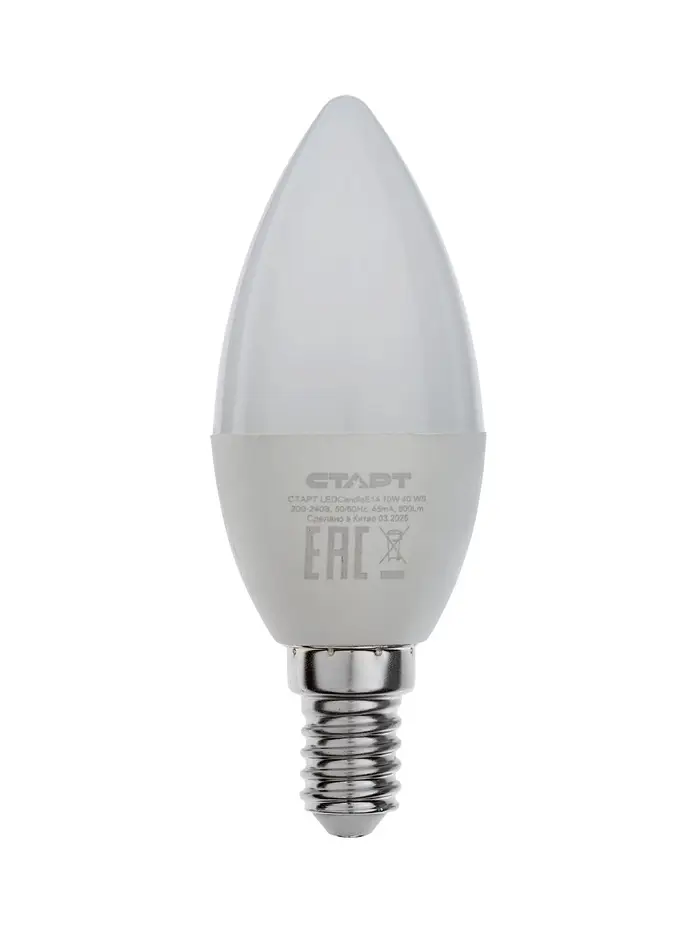 Лампа светодиодная СТАРТ, 10 Вт, Е14, С37, 4000К, 800 Лм, холодный (нейтральный) свет