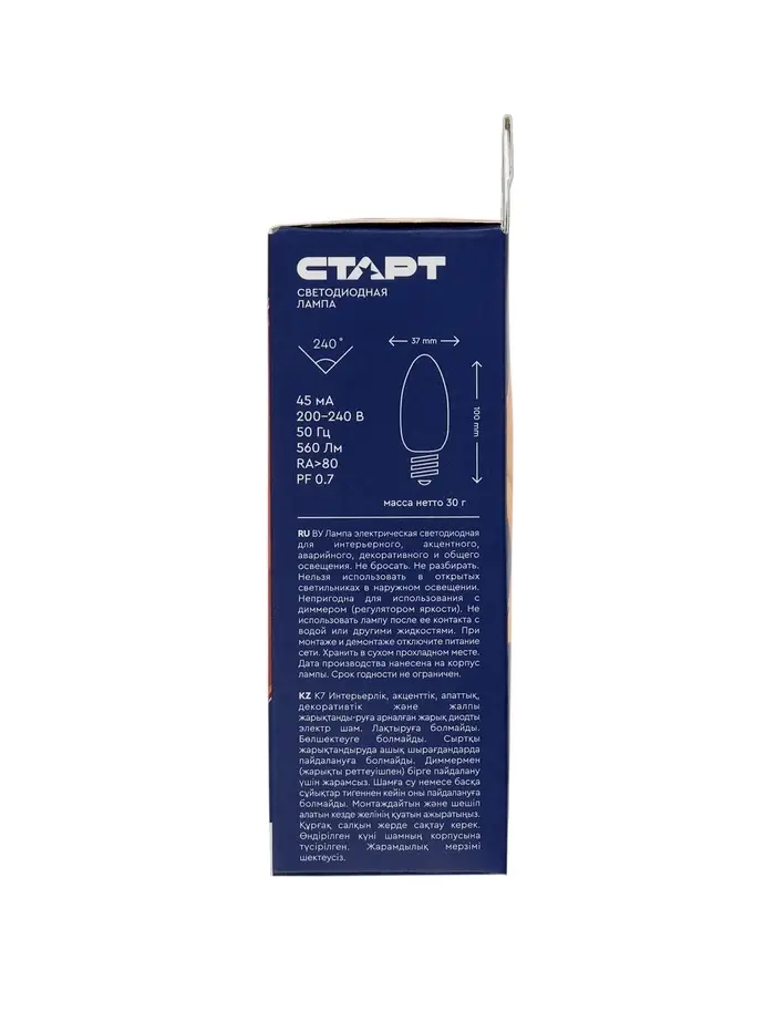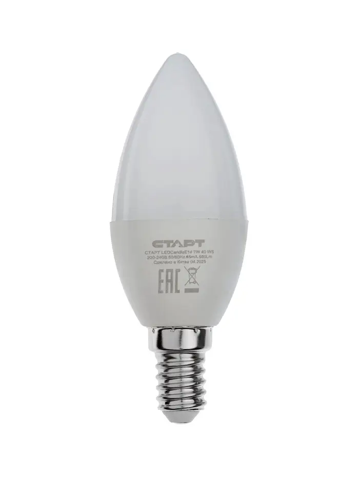 Лампа светодиодная СТАРТ, 7 Вт, Е14, С37, 4000К, 560 Лм холодный (нейтральный) свет