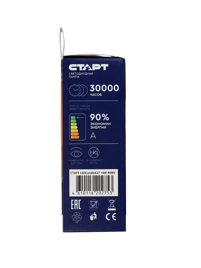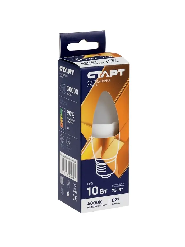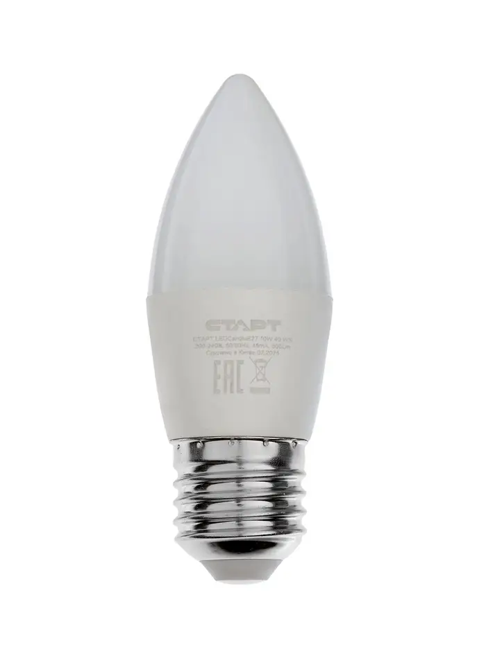 Лампа светодиодная СТАРТ, 10 Вт, Е27, С37, 4000К, 800 Лм, холодный (нейтральный) свет
