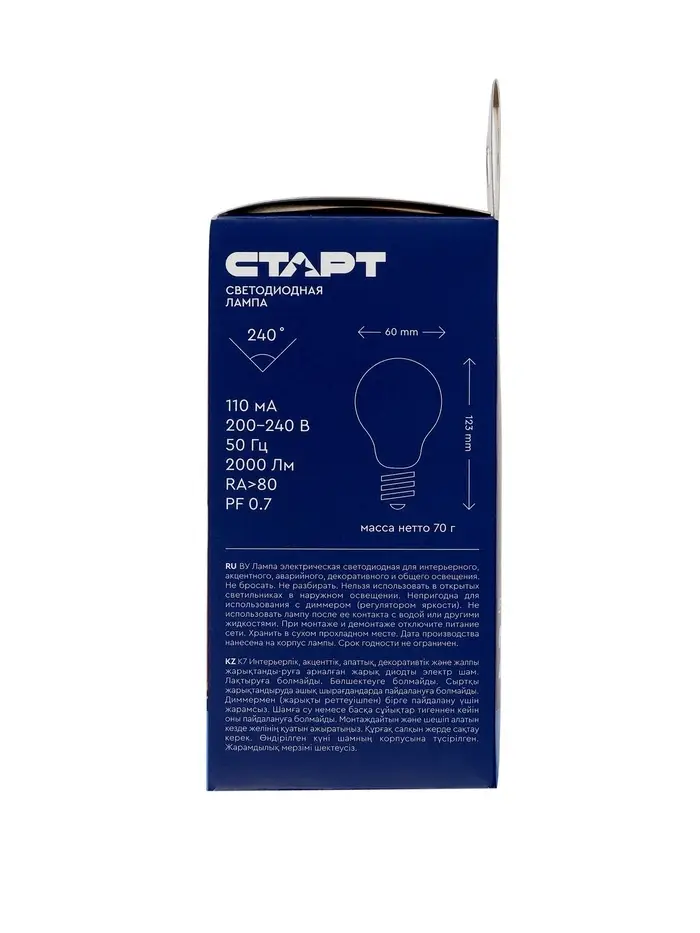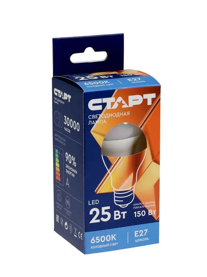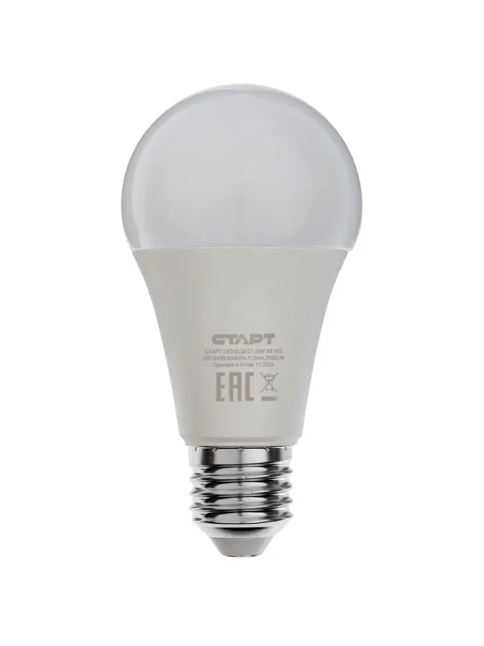 Лампа светодиодная СТАРТ, 20 Вт, Е27, А60, 6500К, 1600 Лм, холодный (белый) свет
