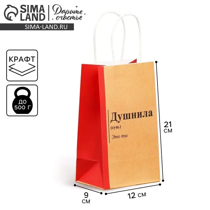Пакет подарочный крафтовый, упаковка, «Душнила», 12 х 21 х 9 см