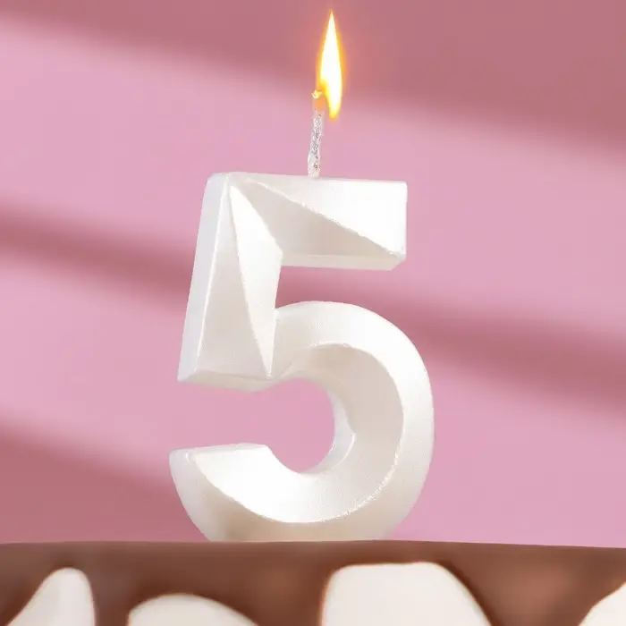 Свеча в торт «Грань», цифра 5, жемчужный, 6.5 см