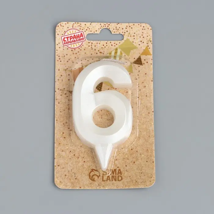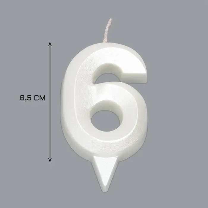 Свеча в торт «Грань», цифра 6, жемчужный, 6.5 см
