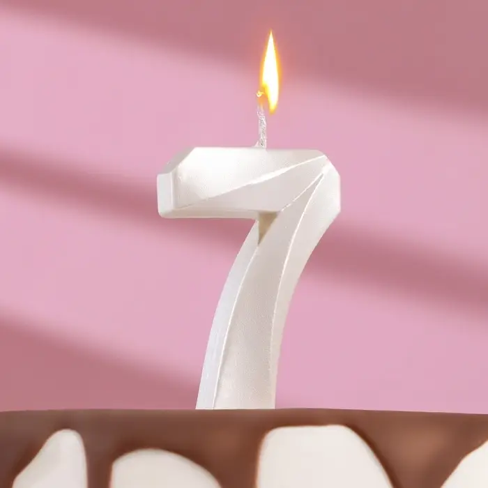 Свеча в торт «Грань», цифра 7, жемчужный, 6.5 см