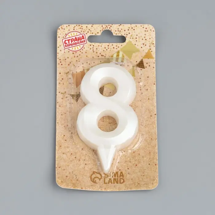 Свеча в торт «Грань», цифра 8, жемчужный, 6.5 см