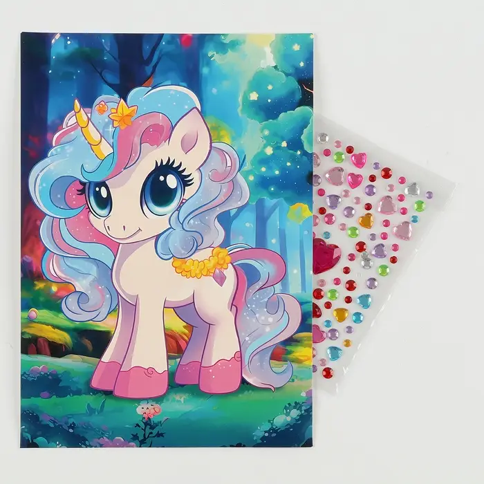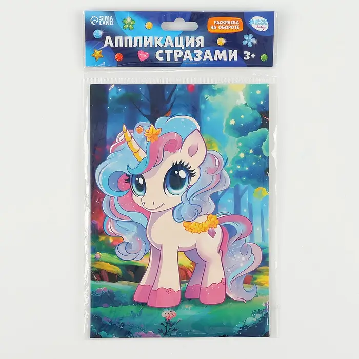 Аппликация стразами для детей «Единорожка», набор для творчества, А5