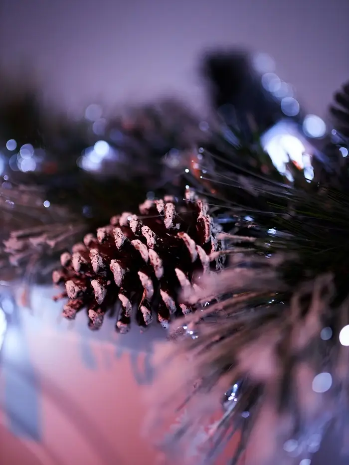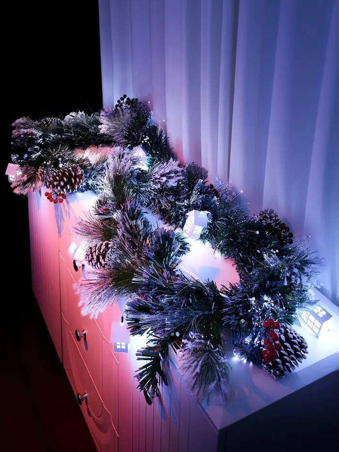 Хвойная гирлянда фиброоптическая «Заснеженная» 200 см, 8 режимов