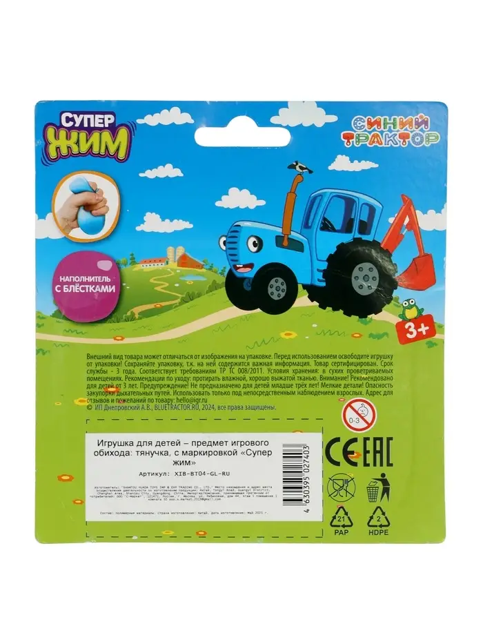 Игрушка-тянучка антистресс с блестками «Синий Трактор» XIB-BT04-GL-RU