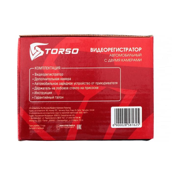 Видеорегистратор TORSO, 2 камеры, HD 1920×1080P, TFT 2.4, обзор 120°