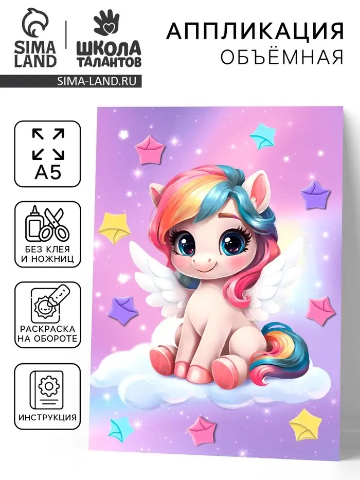 Объемная аппликация со звездочками оригами "Сказочный единорог"