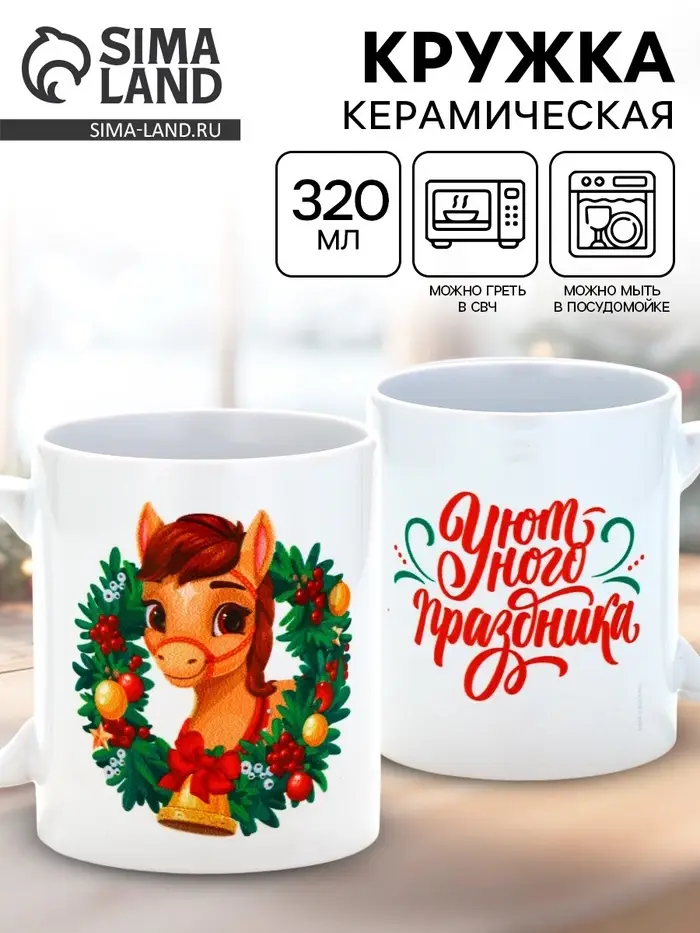 Кружка керамическая новогодняя «Уютного праздника», 320 мл