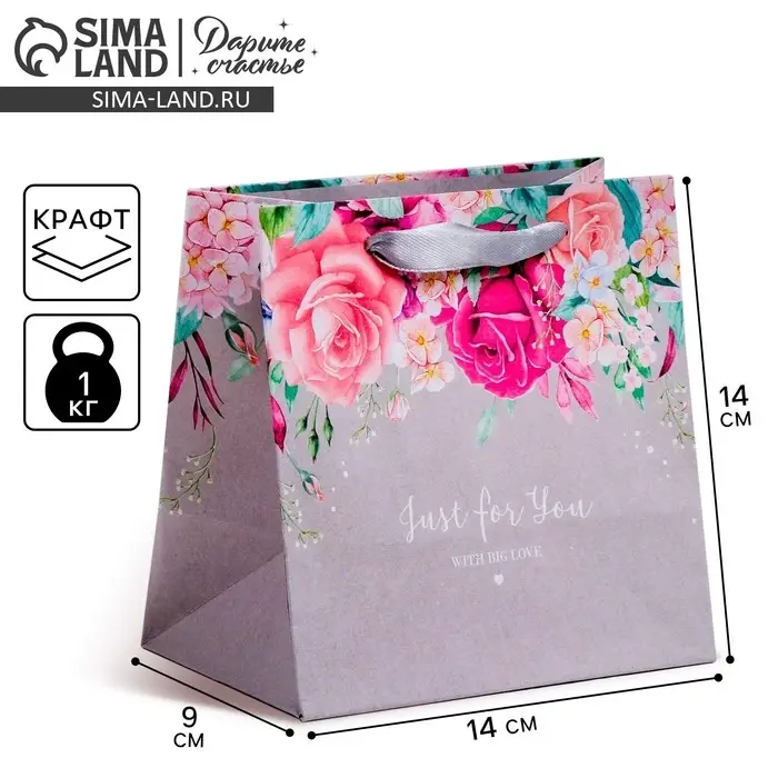 Пакет подарочный крафтовый квадратный, упаковка, «С нежной любовью», 14 х 14 х 9 см
