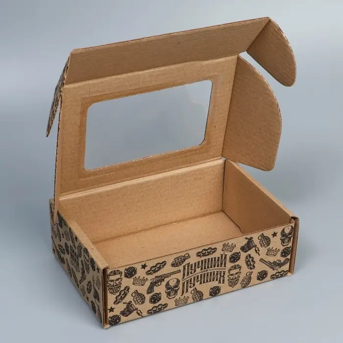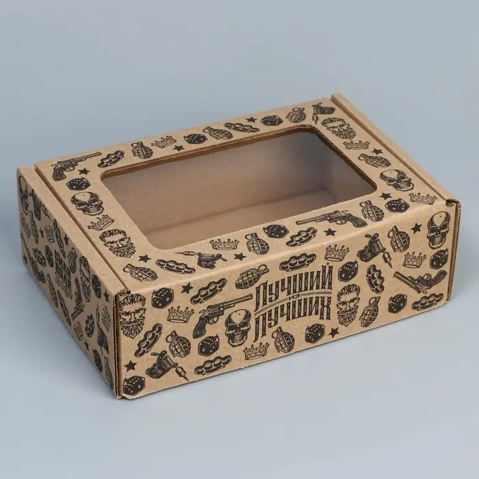 Коробка подарочная сборная с окном, упаковка, «Лучший из лучших», бурый, 24 х 8 х 16 см