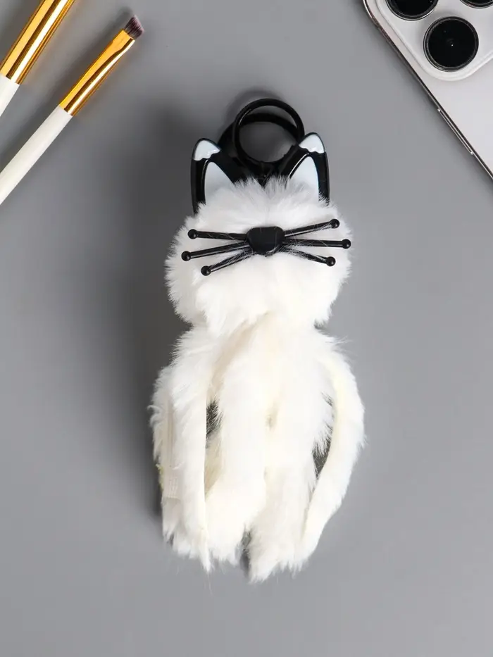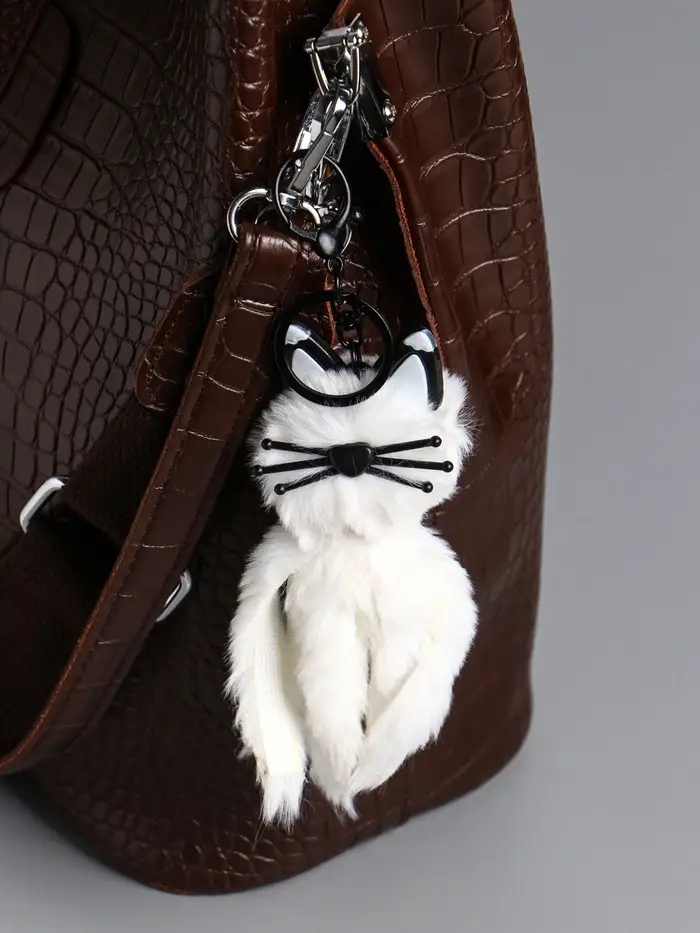Пушистик на кольце "Белый кот" 18х5х5 см