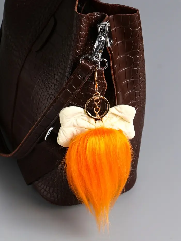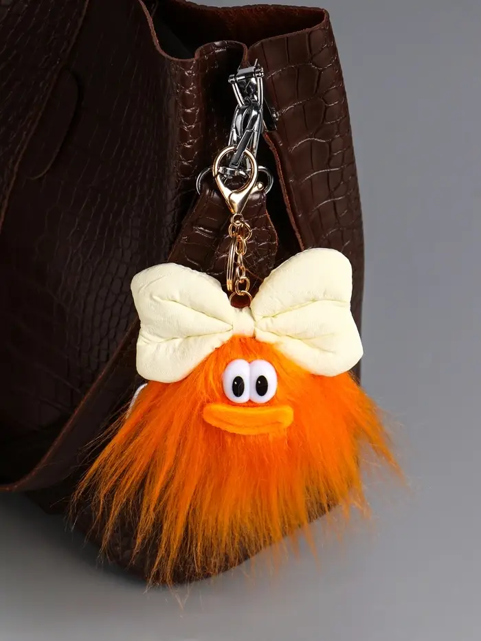 Пушистик на кольце "Чучундра с бантиком" оранж 18х10х5 см